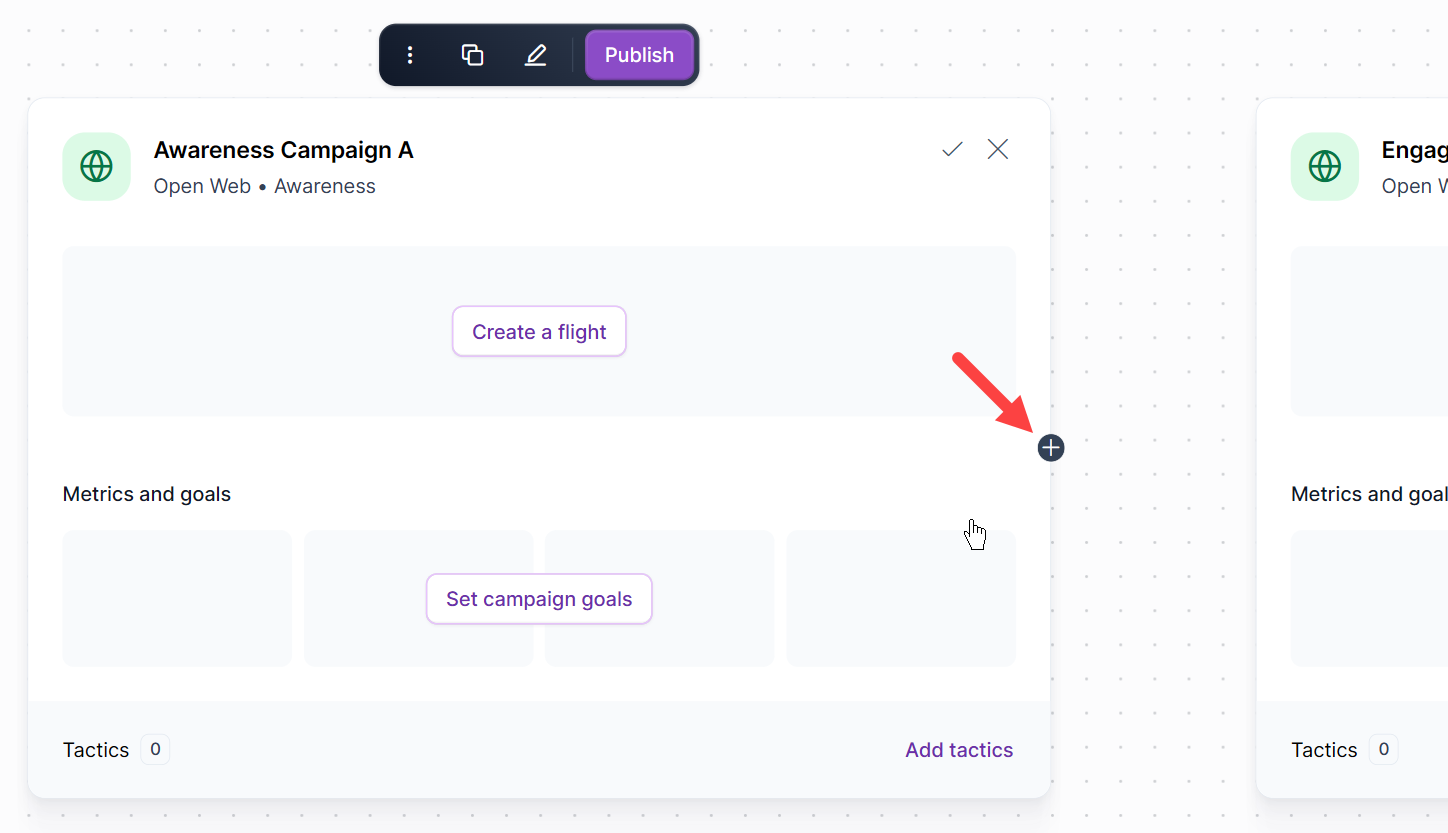 - Locate the plus (+) icon on the edge of the campaign block.