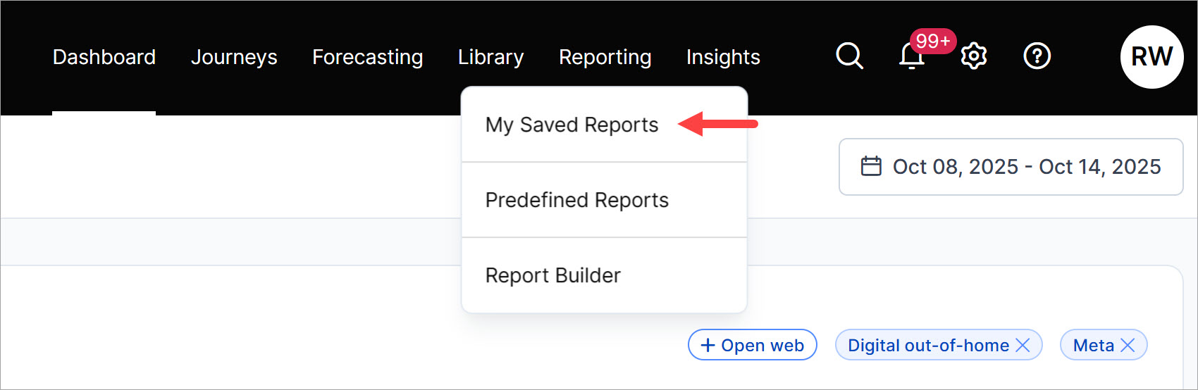 Use this feature to open a saved report from the Reporting section. You can open a Predefined Report or a custom report created with the Report Builder. You can also use save as to save an updated version without overwriting the original.