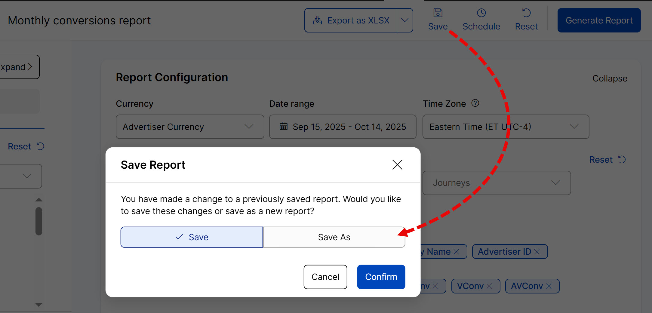 If you change a saved report in some way (e.g. add a field), save the changes to the current file or use the Save as feature and create a new report with a different name.