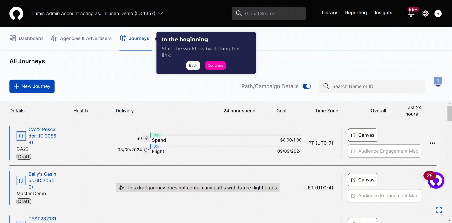 - Pause on all steps: A bulk pause tool. illumin pauses all instances of the creative file across multiple steps within the same journey.